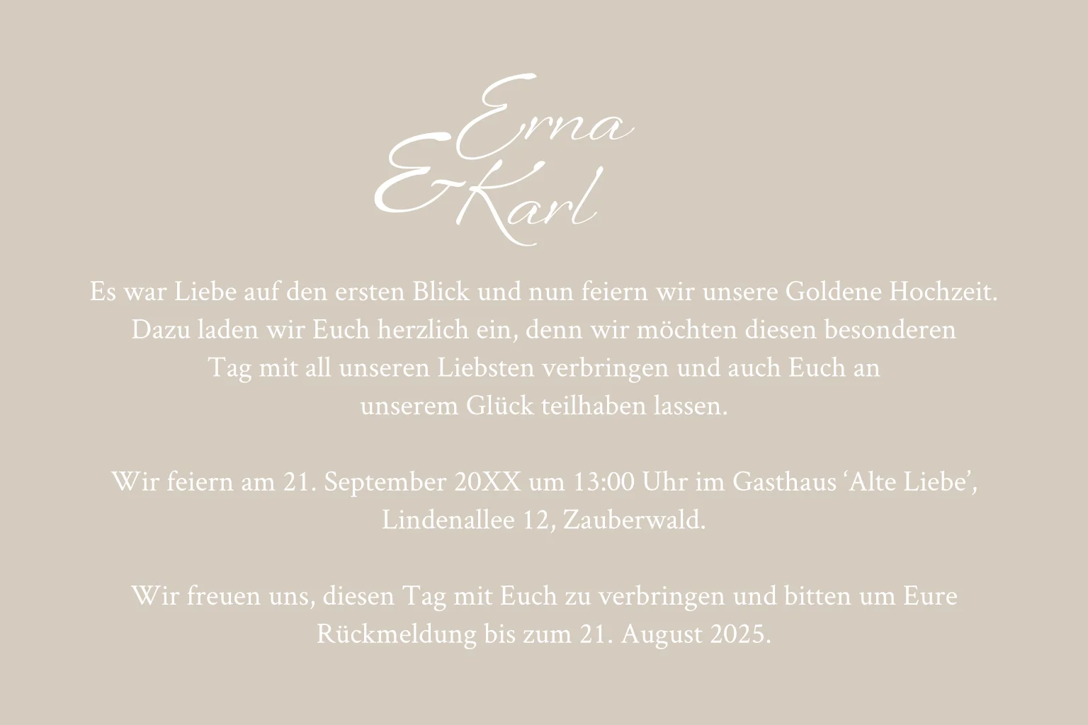 Klappkarte im Format 17,1 x 11,4 cm - ideal für eine Einladungskarte zur goldenen Hochzeit.