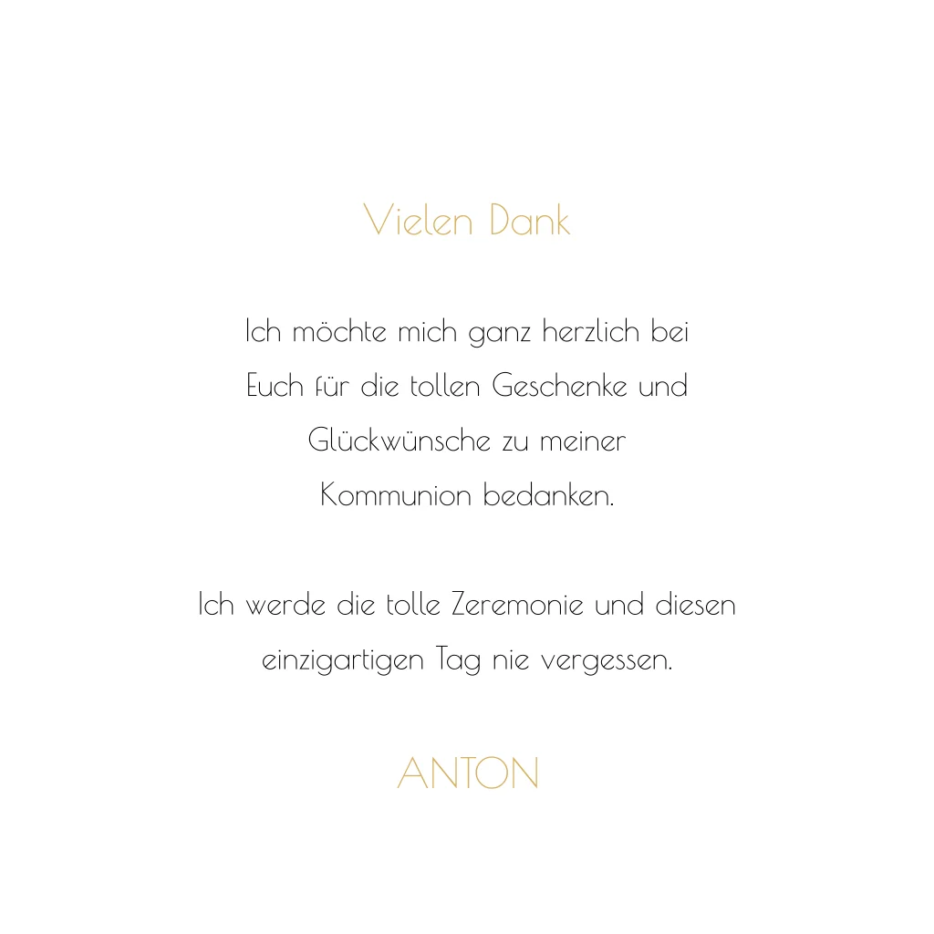 1-fach Karte im Format 13 x 13 cm - ideal für eine Danksagung zur Kommunion.