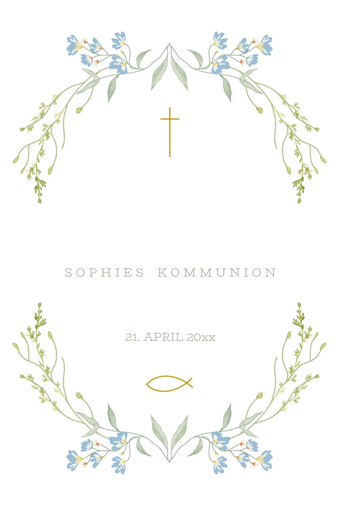 Blühender Segensgruß Kranz Einladung zur Kommunion.
