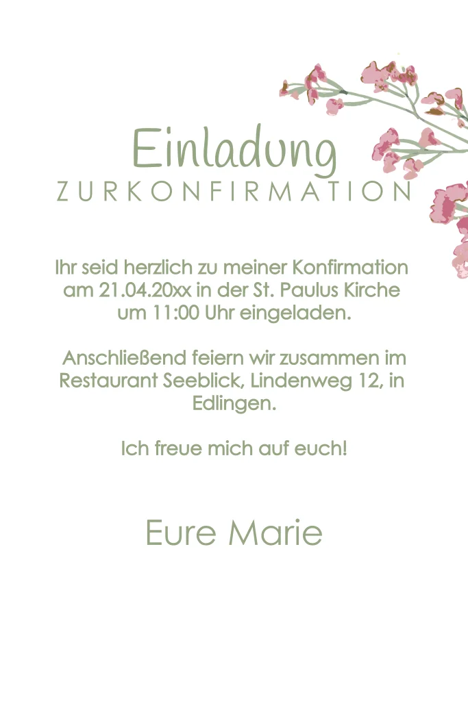 Klappkarte im Format 11,4 x 17,1 cm - ideal für eine Einladungskarte zur Konfirmation.