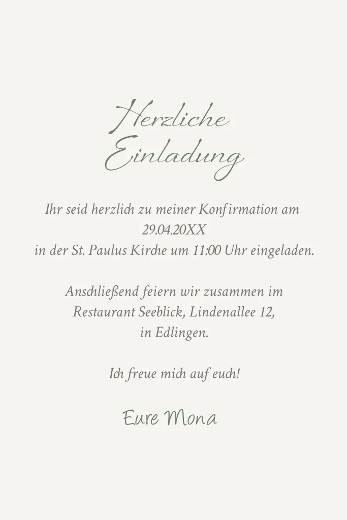 Klappkarte im Format 11,4 x 17,1 cm - ideal für eine Einladungskarte zur Konfirmation.