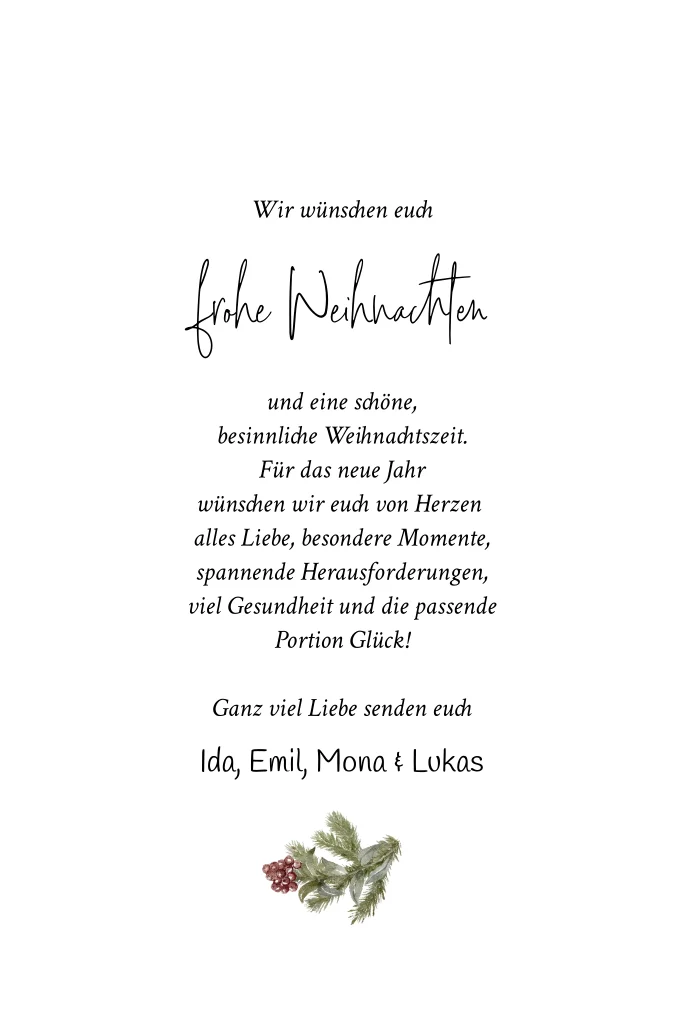 Eine festliche Weihnachtskarte mit grünem Rahmen,