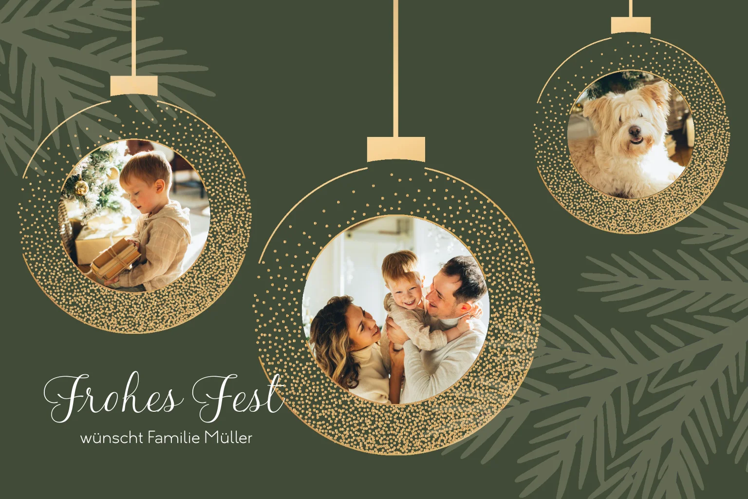 Private Weihnachtskarte Fotorahmen aus Weihnachtsbaumkugeln