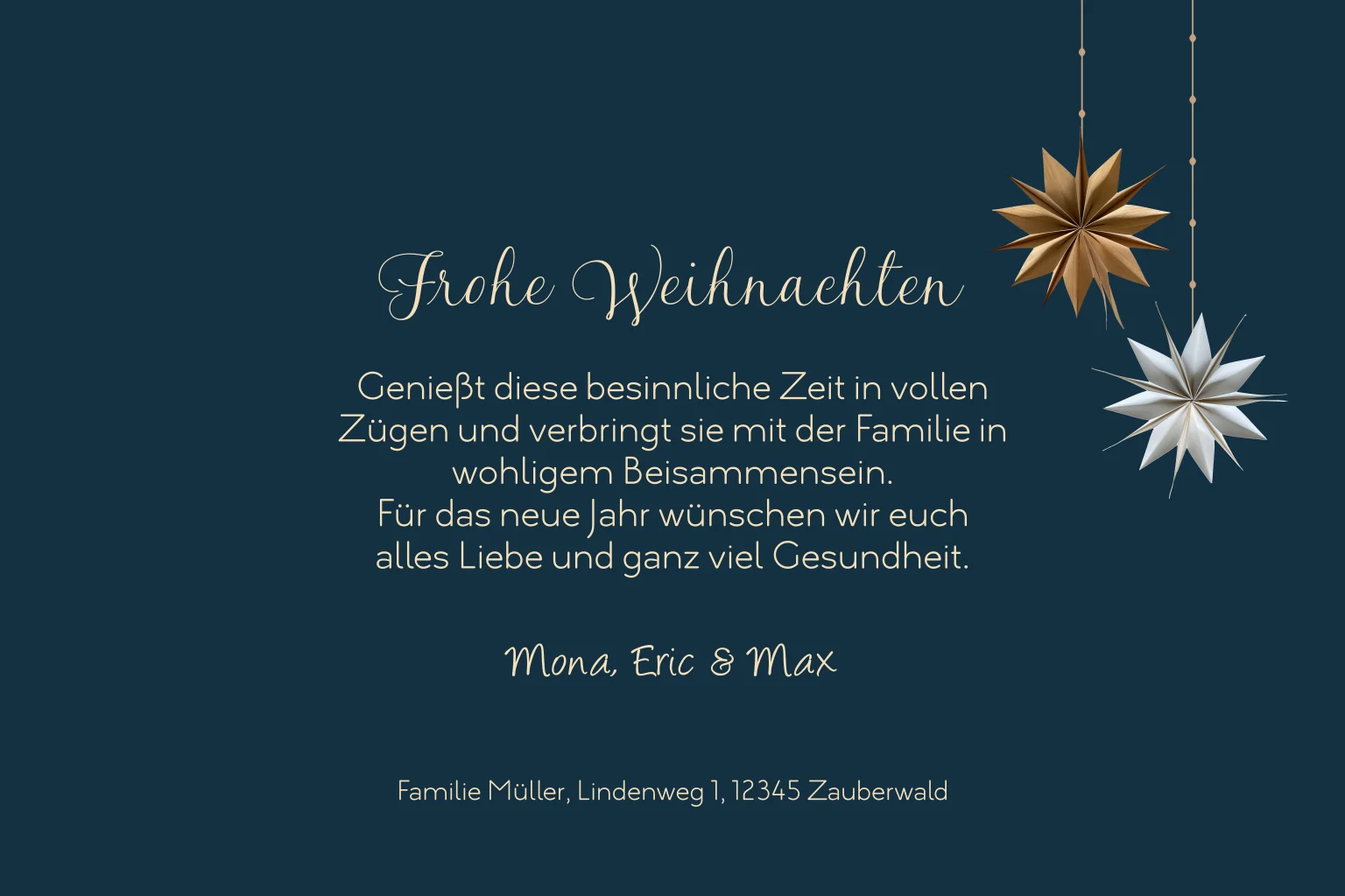 Festliche Weihnachtskarte mit Foto, personalisierbar in unserem Online-Editor.