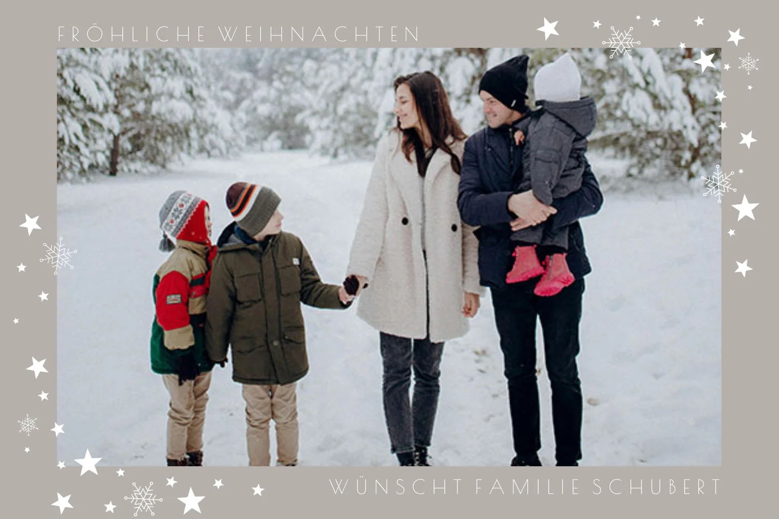 Überraschen Sie Familie, Freunde oder Geschäftspartner mit einer exklusiven Weihnachtskarte im schlichten Design. Die verspielten Sternchen auf der Vorderseite sorgt für festliche Stimmung und unterstreicht Ihre Wertschätzung zum Weihnachtsfest.