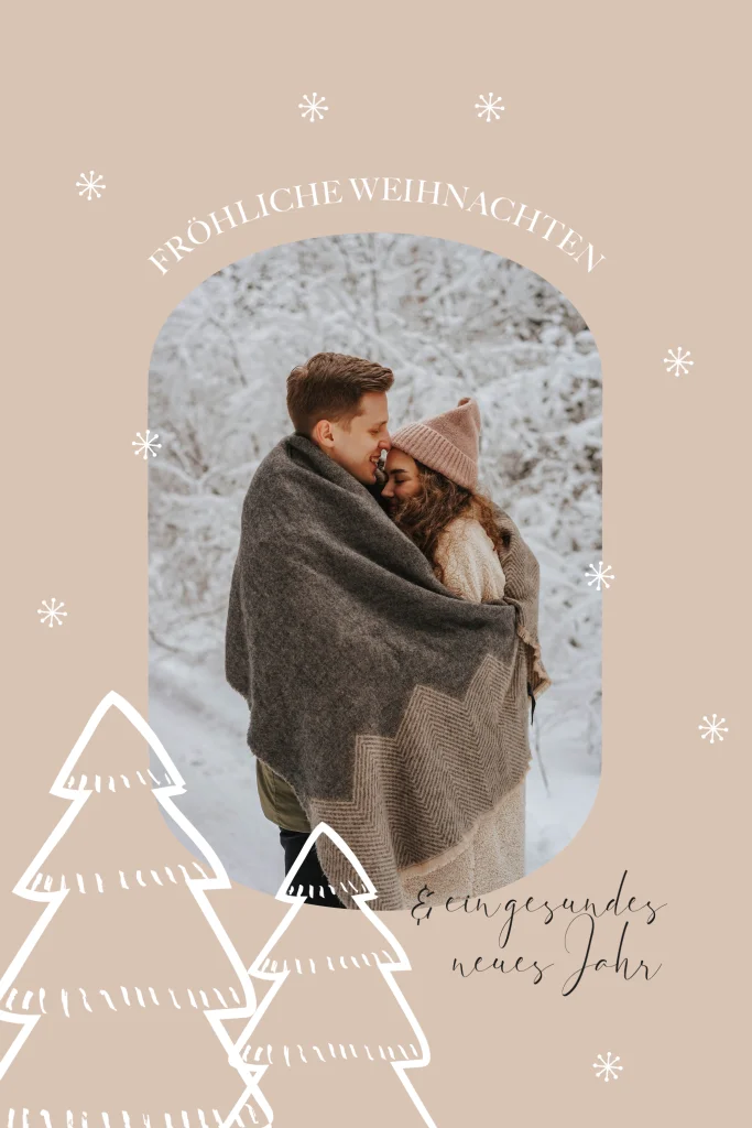 Überraschen Sie Familie, Freunde oder Geschäftspartner mit einer exklusiven Weihnachtskarte im schlichten beige Design. Die verspielten Illustrationen auf der Vorderseite sorgt für festliche Stimmung und unterstreicht Ihre Wertschätzung zum Weihnachtsfest.