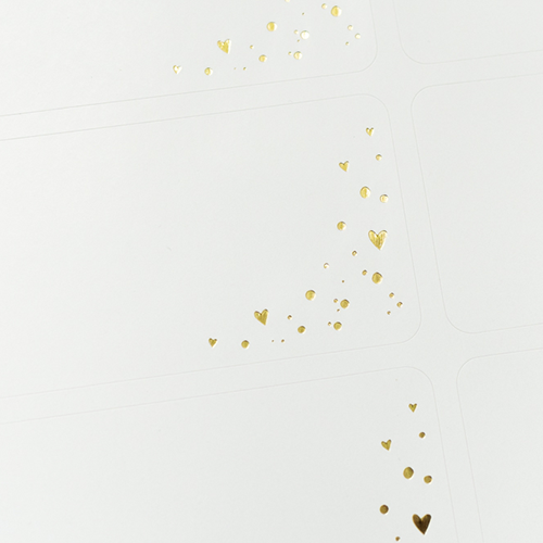 Een vel met 12 adresstickers op glanzend papier. Elke sticker is mooi versierd met goudfolie spetters. Op de adressticker kun je zelf het adres schrijven of printen.