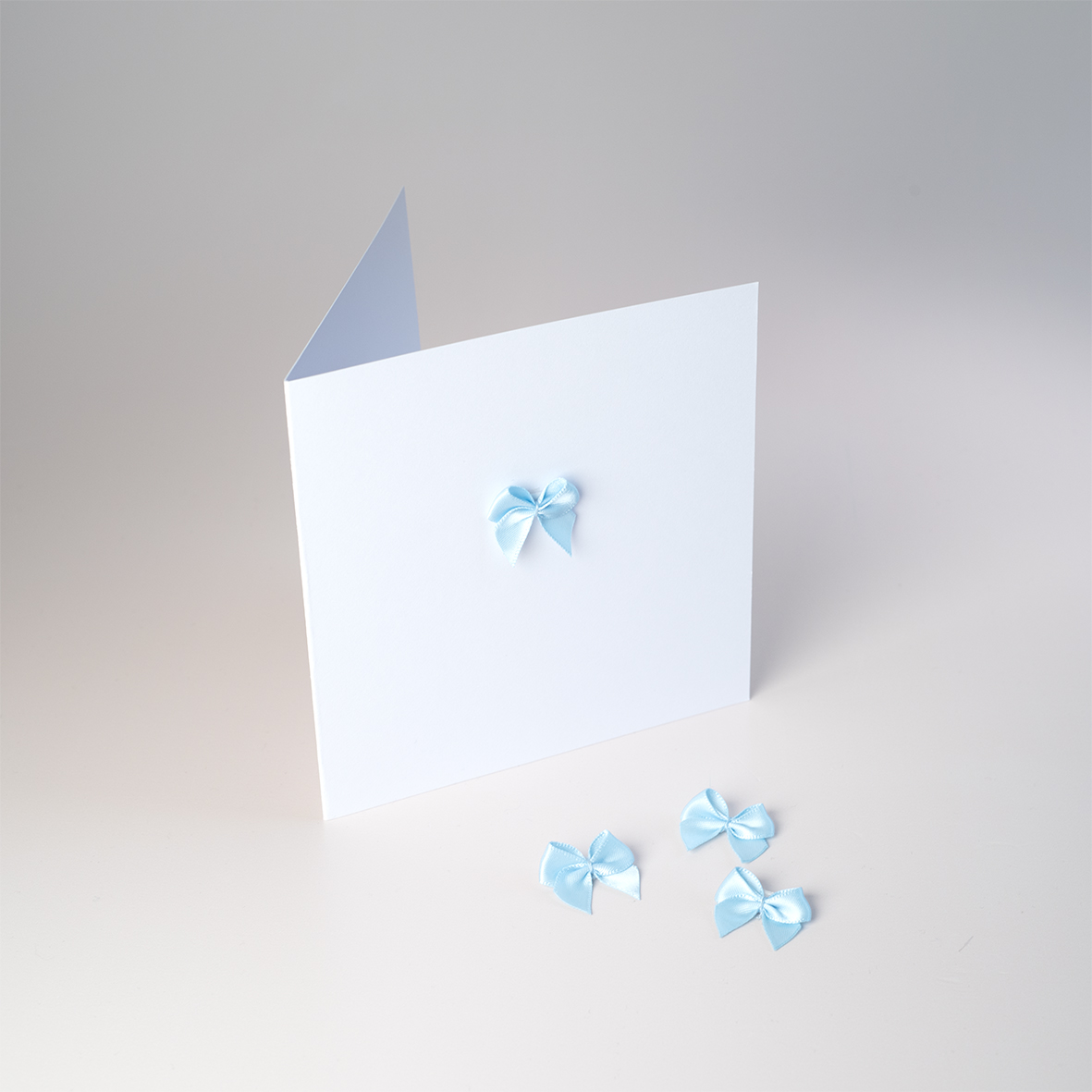 Mooie blauwe strikjes met gemakkelijk plakstripje voor op een geboortekaart. In elk zakje zitten 25 strikjes.