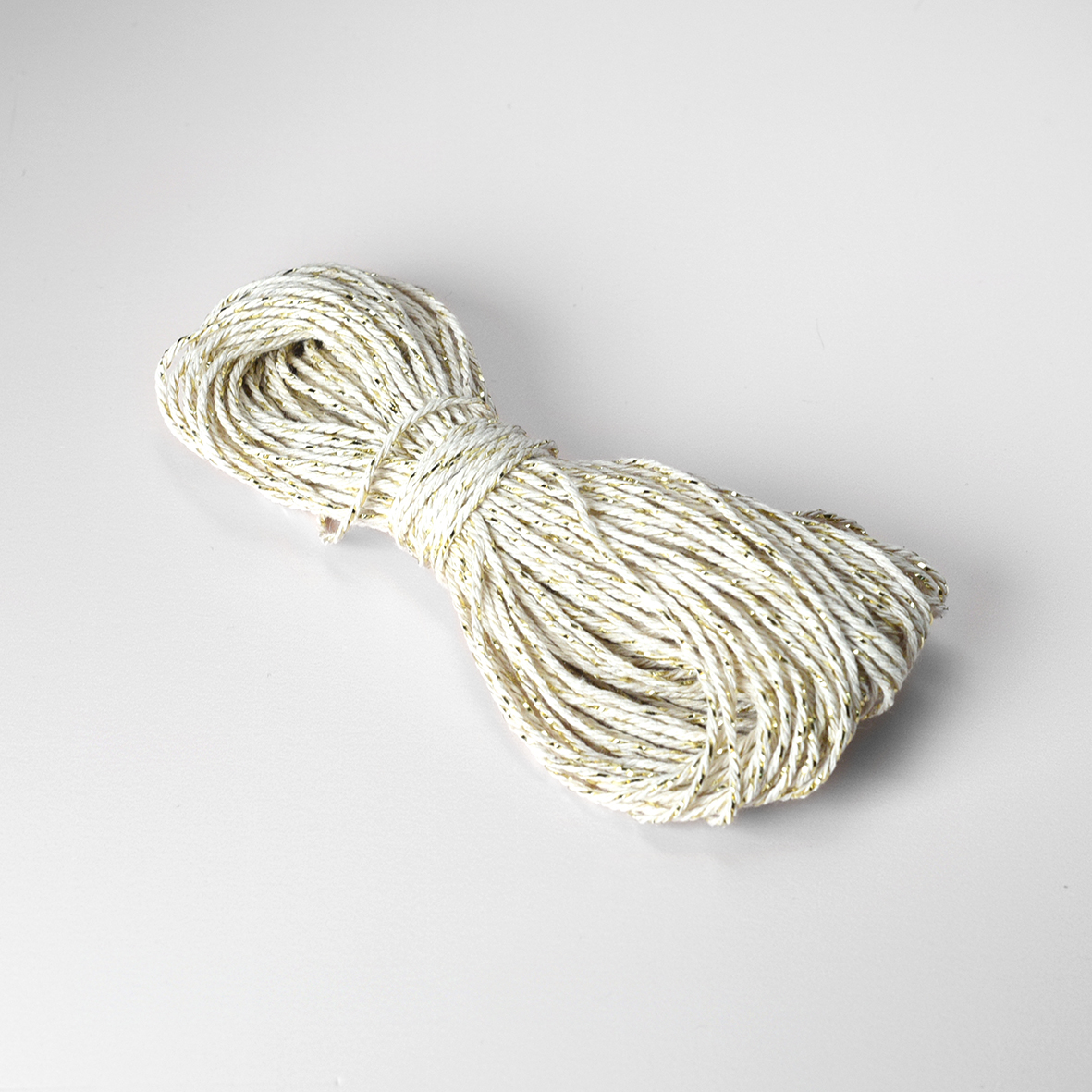 Mooi goud-wit gekleurd baker's twine, heel mooi om je kaartje mee te versieren of een labeltje mee te bevestigen. Verkrijgbaar per 20 meter, hierbij kun minimaal 25 kaartjes versieren.