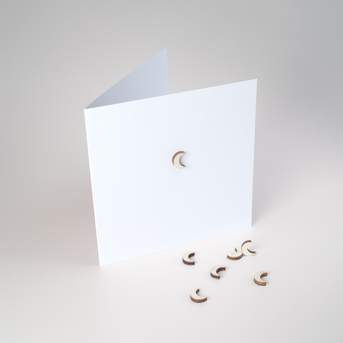Houten maantjes met plakstrip (25 stuks). Formaat: 1,2 cm (lengte) x 0,5 cm (dikte).