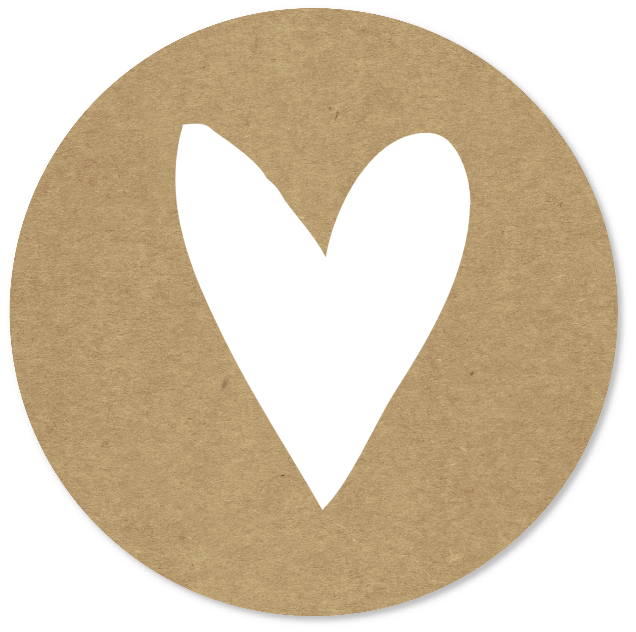 Sluitzegels met kraftlook achtergrond en wit hartje. Deze sluitzegel past goed bij onze kraftkleurige envelop.