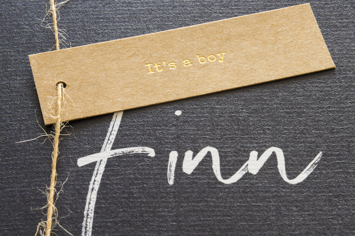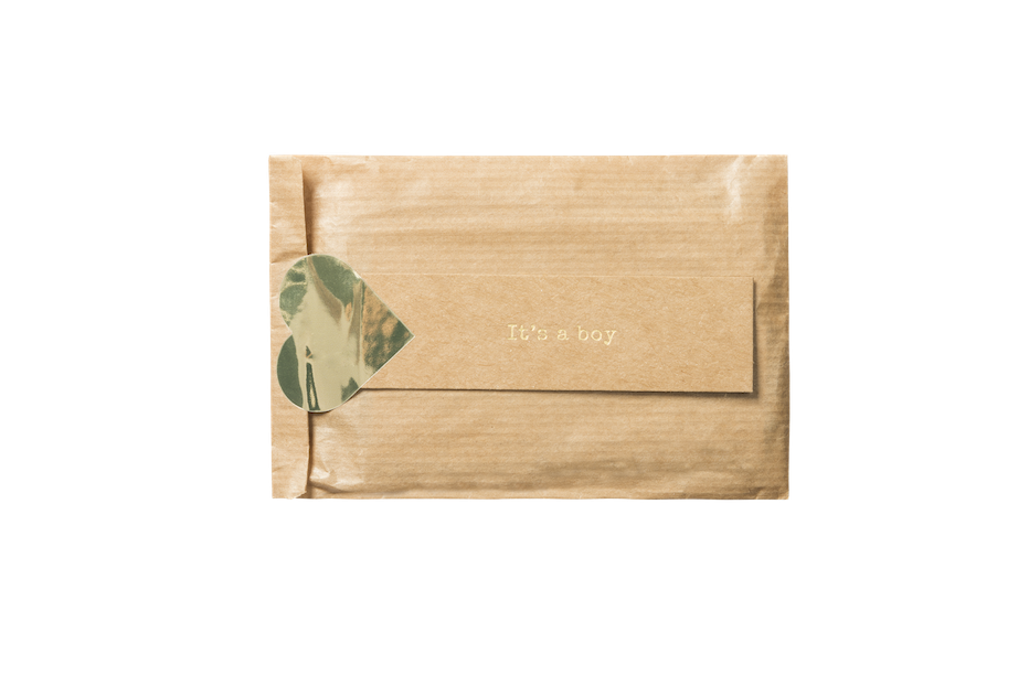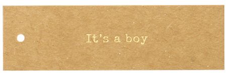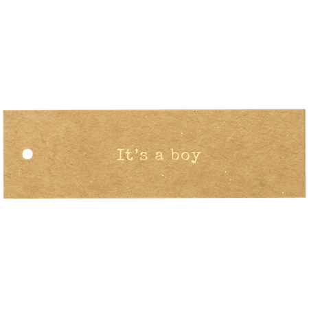 Hip kraftlabel met in goudfolie de tekst It's a boy.