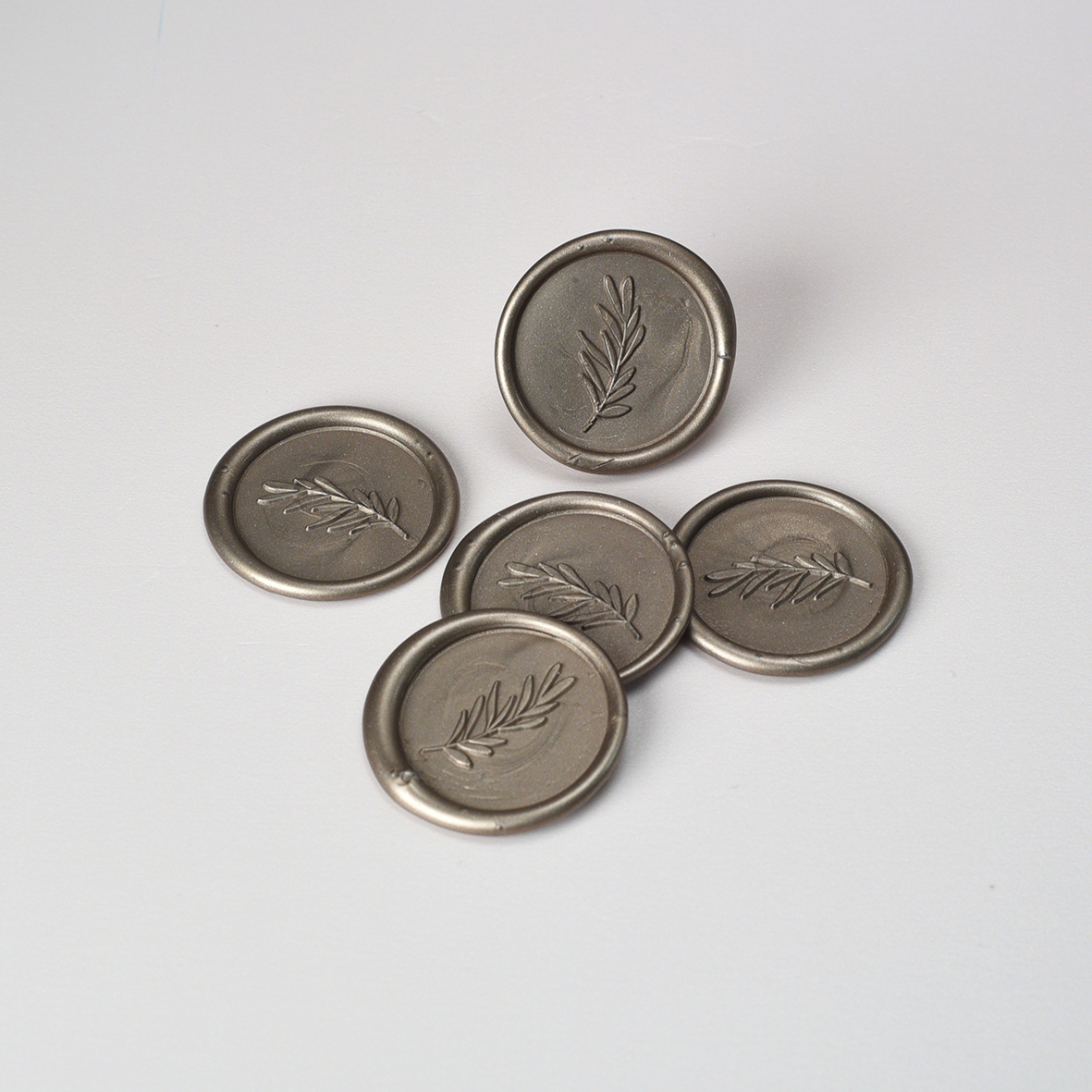 Antiek bronzen lakzegels met takje (25 stuks). Formaat: ⌀ 3 cm en inclusief plakstrip. De lakzegels zijn handgemaakt en daarmee allemaal uniek.