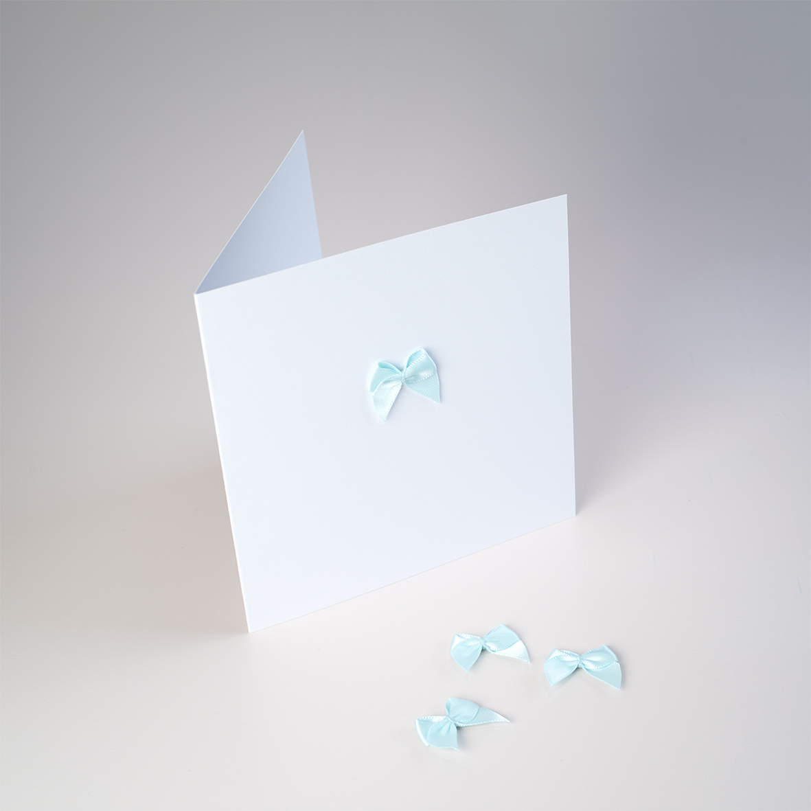 Mooie mintgroene strikjes met gemakkelijk plakstripje voor op een geboortekaart. In elk zakje zitten 25 strikjes.