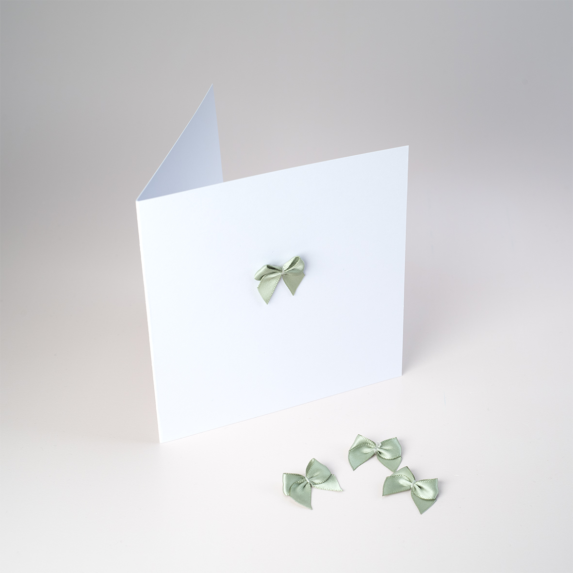 Mooie olijfgroene strikjes met gemakkelijk plakstripje voor op een geboortekaart. In elk zakje zitten 25 strikjes.