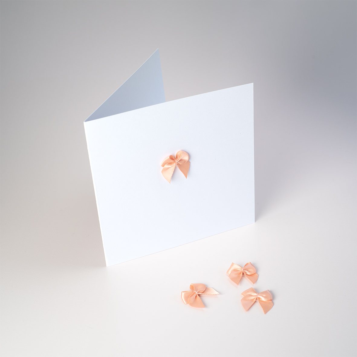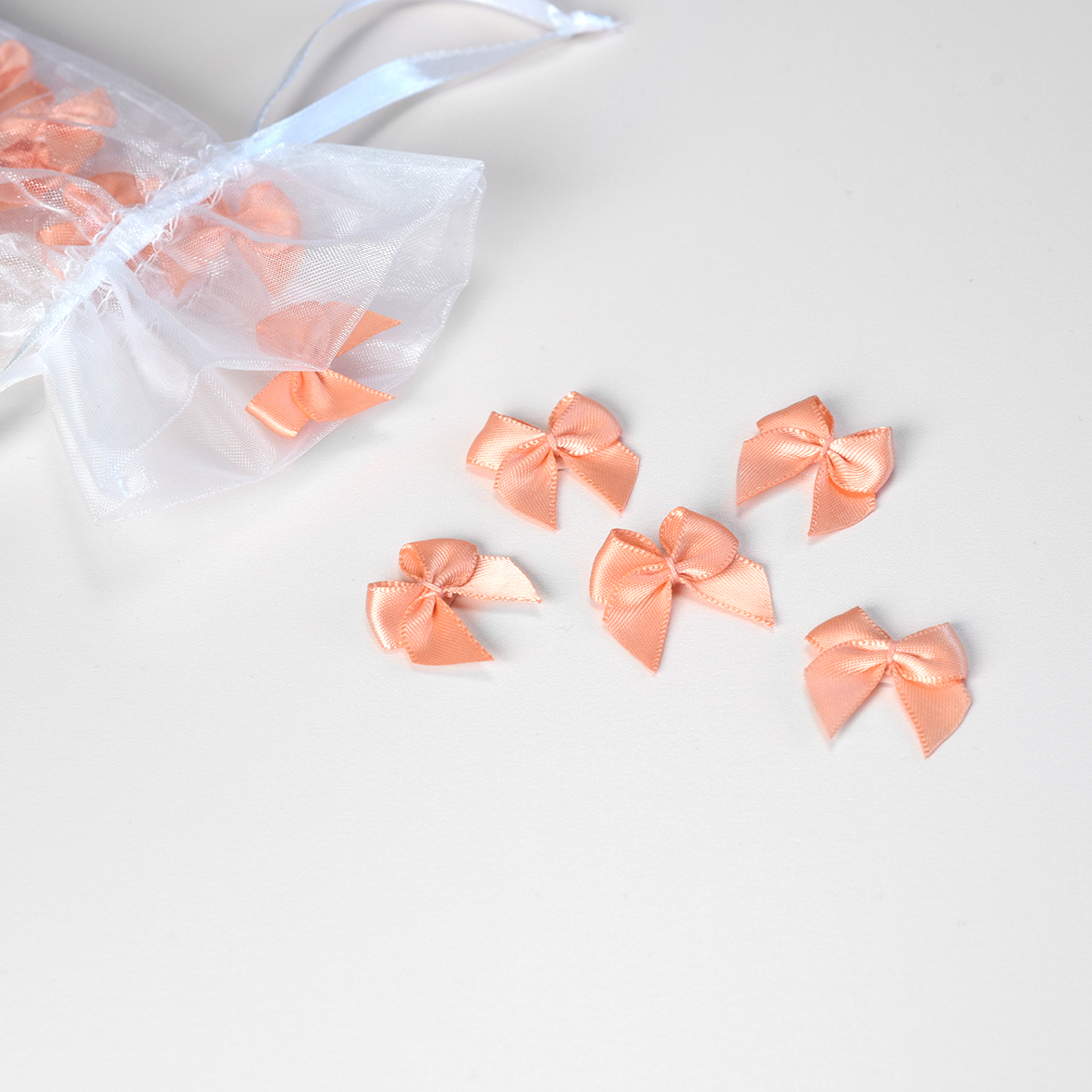 Mooie peach strikjes met gemakkelijk plakstripje voor op een geboortekaart. In elk zakje zitten 25 strikjes.