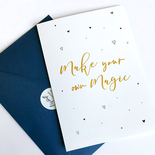 De sampleset bevat een modelkaart in goudfolie + modelkaart in zilverfolie + alle envelopkleuren en leuke informatie over het proces en ons als studio