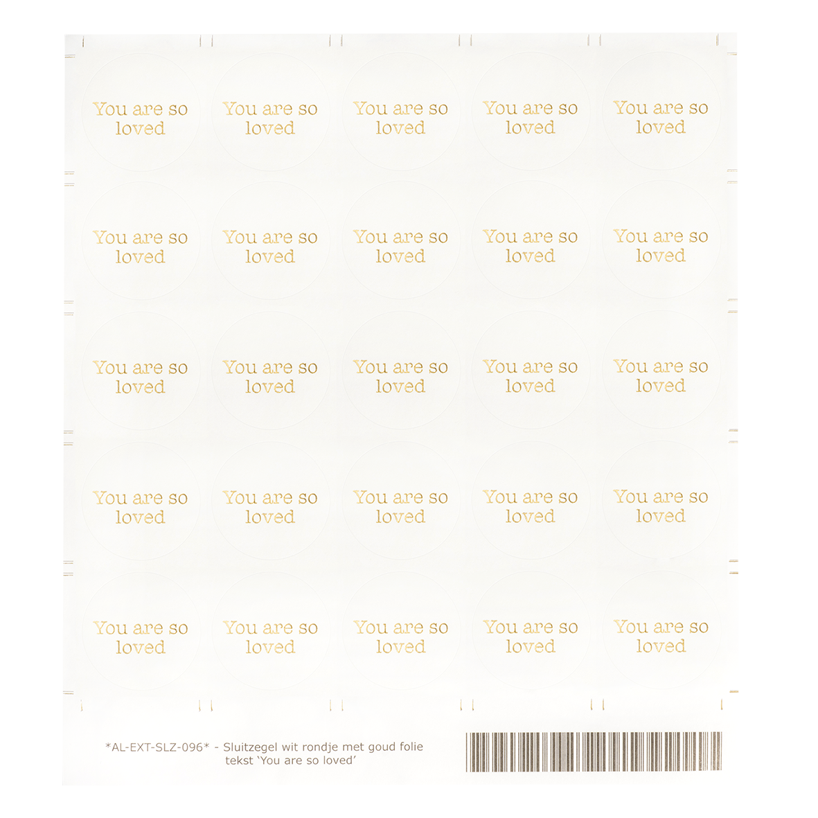Witte sluitzegel met lieve tekst 'You are so loved' in gouden letters