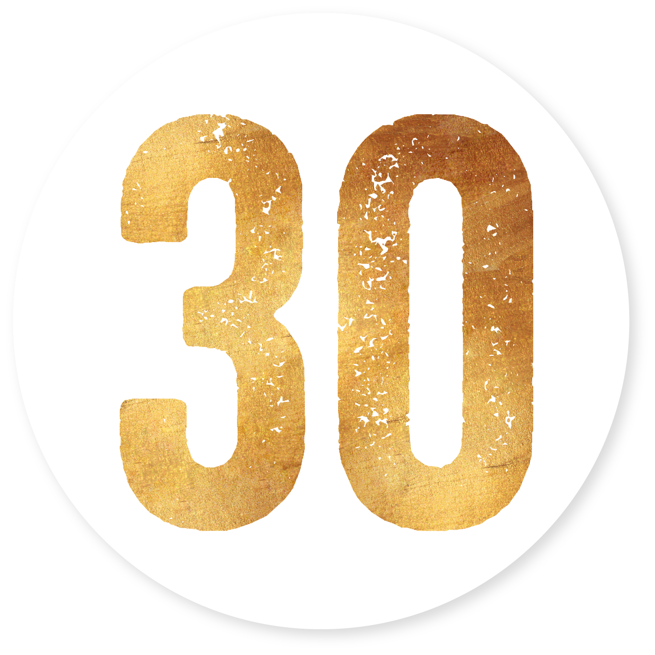 Deze sluitsticker met een 30 in goudlook past perfect bij een huwelijksjubileum! Ook leuk om te gebruiken wanneer je je 30e verjaardag viert.
