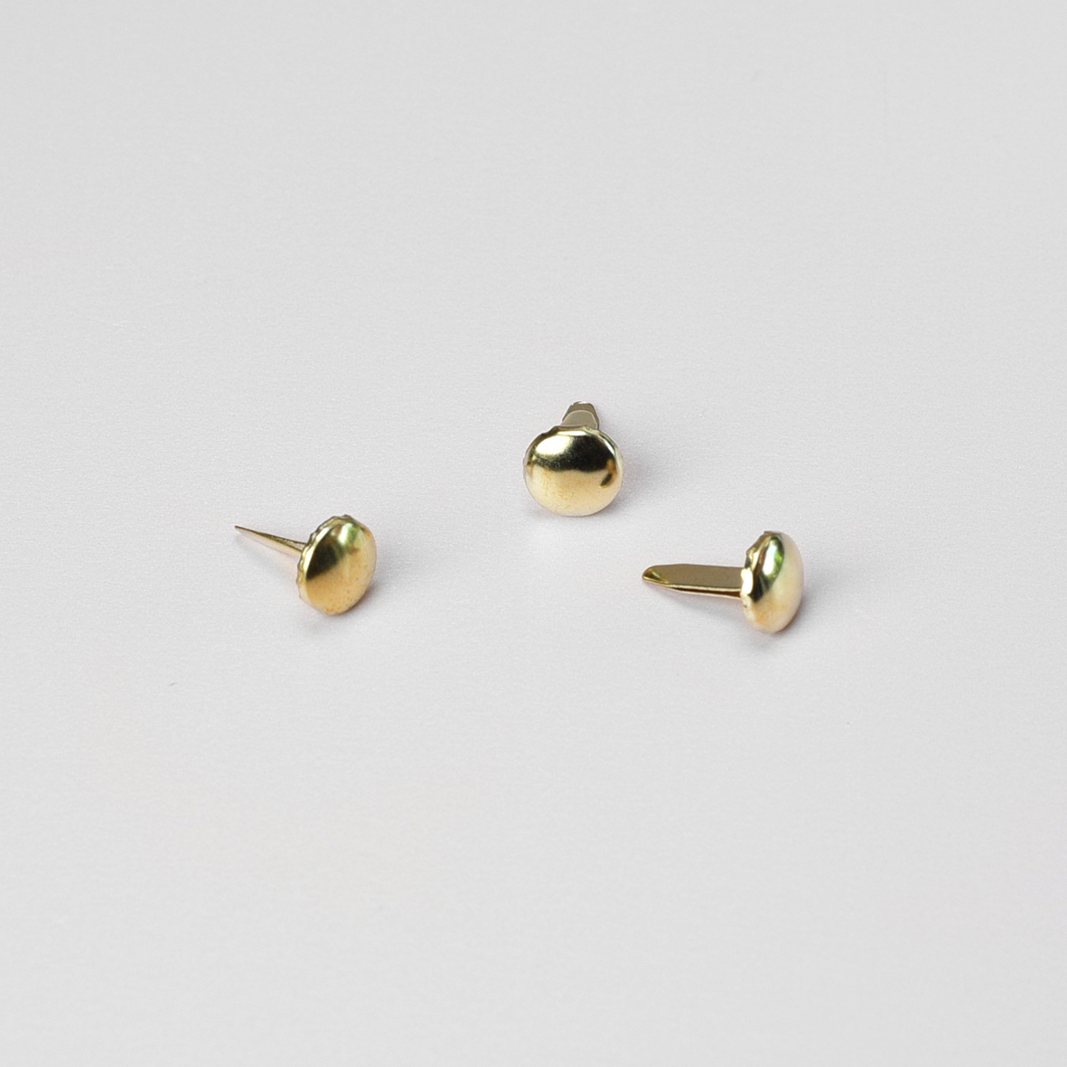 Ronde, gouden splitpennen (25 stuks). Formaat: 1,2 cm (lengte) x 0,3 cm (breedte) x ⌀ 0,8 cm (kop).