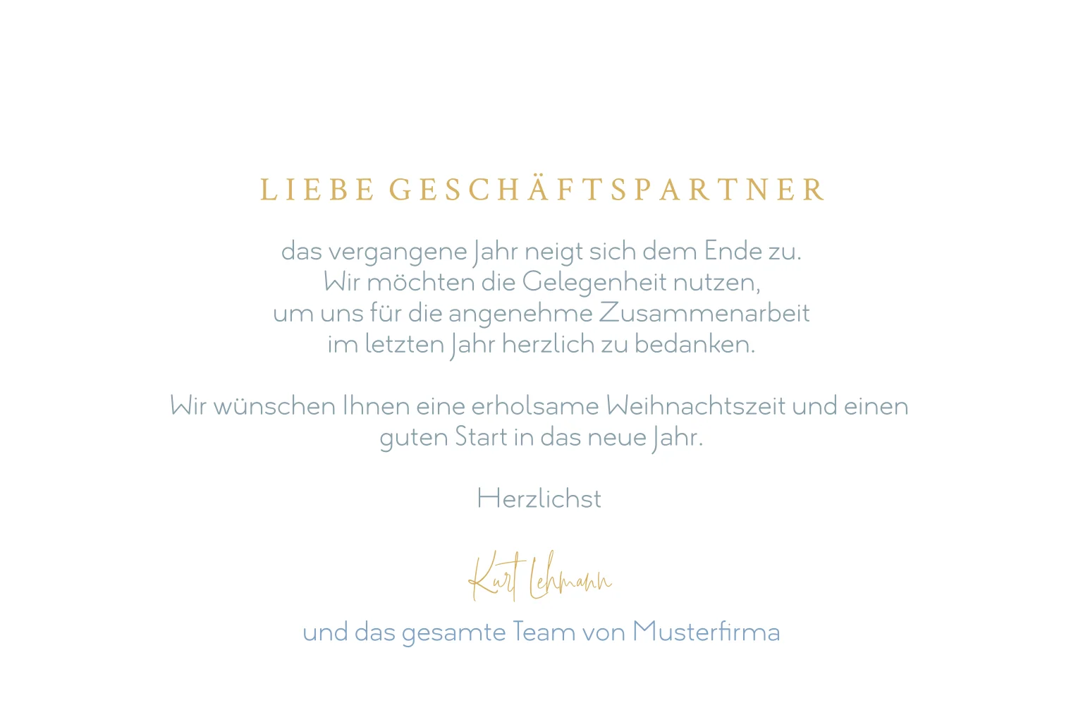 Geschäftliche Weihnachtskarte Aquarell blauer Wald mit Goldvereldeung