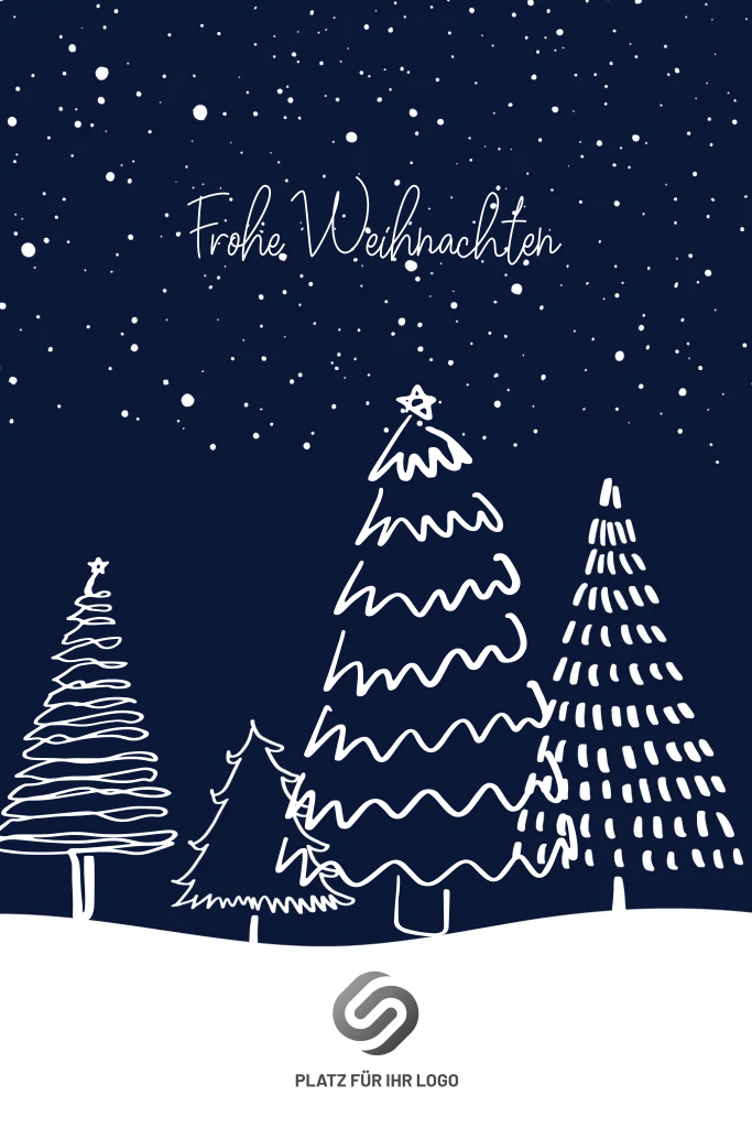 Geschäftliche Weihnachtskarte verschneiter Wald bei Nacht