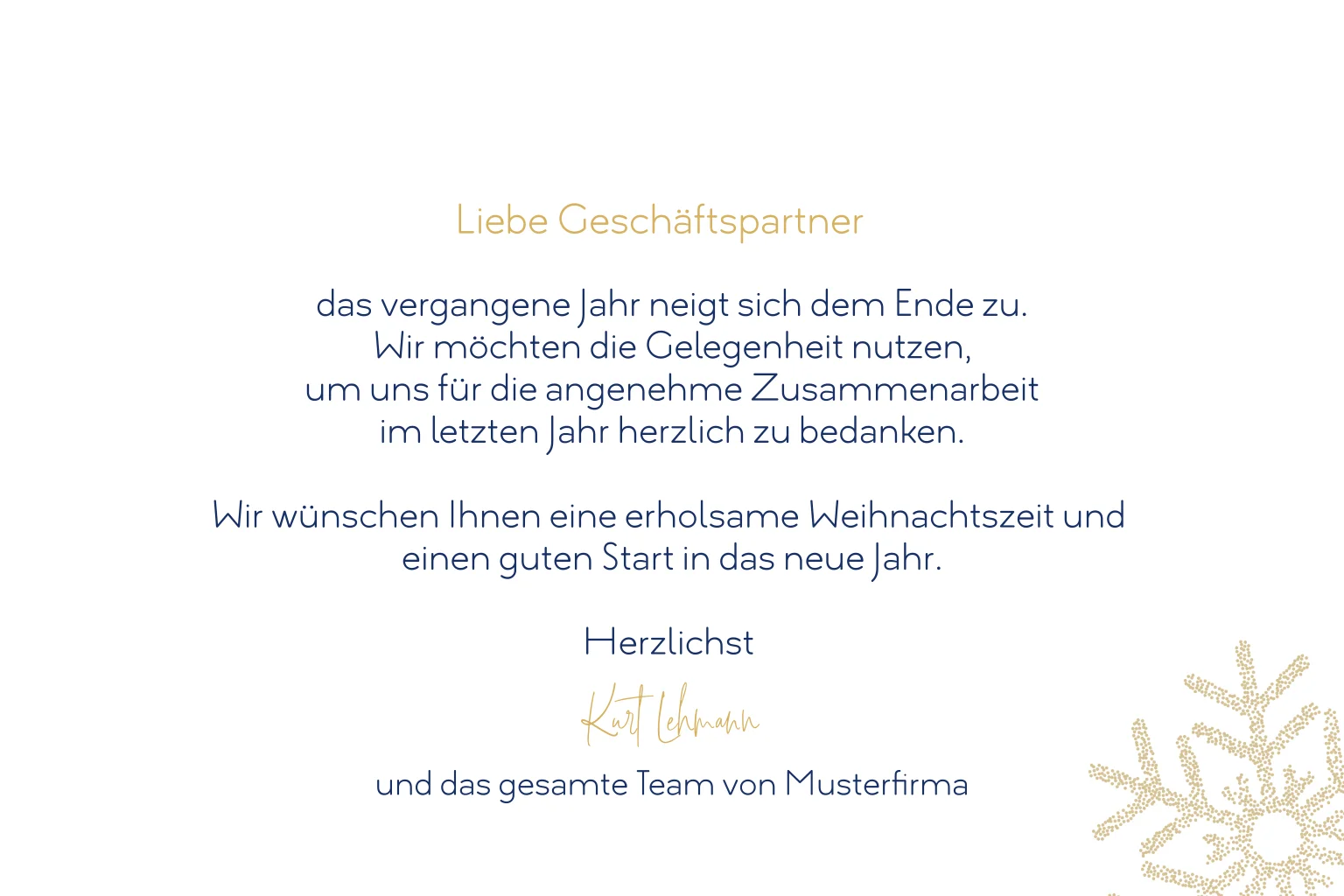 Festliche Weihnachtskarte mit goldenen Schneeflocken,