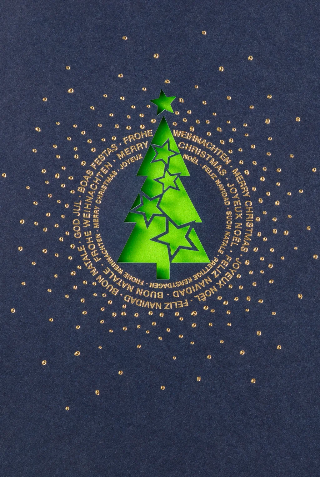 Edle glitzernde Weihnachtskarte mit Laserstanzung.