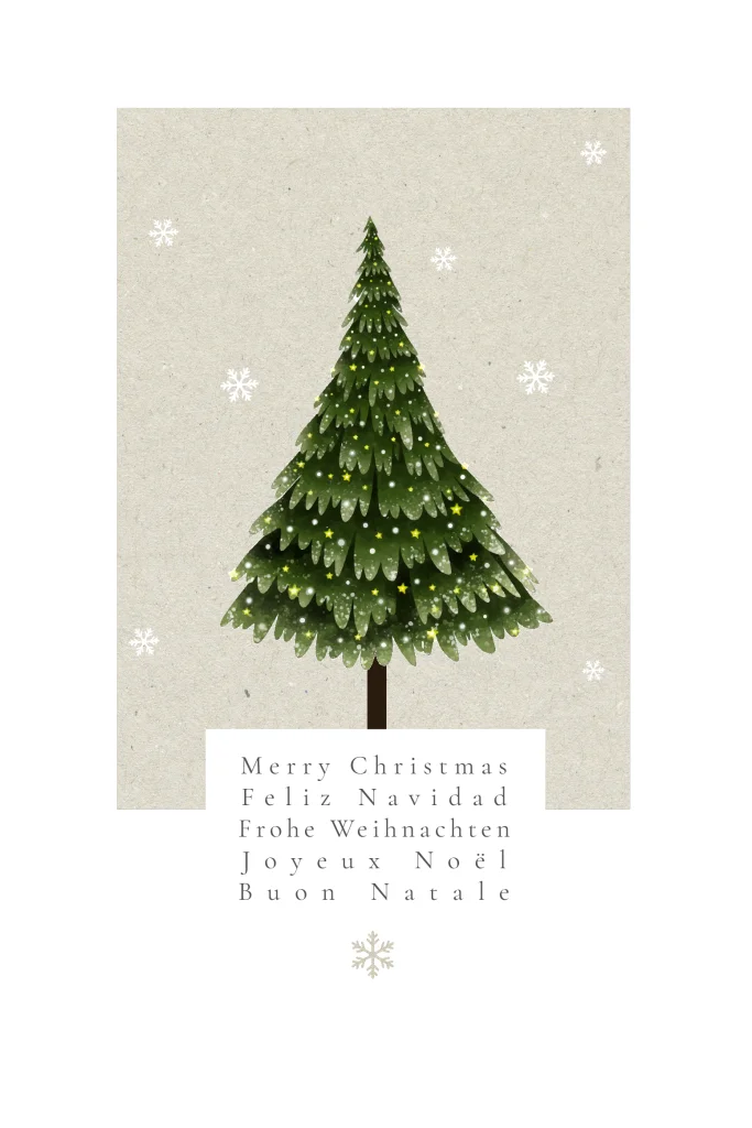 Festliche Weihnachtskarte mit Tannenbaum, personalisierbar in unserem Editor.